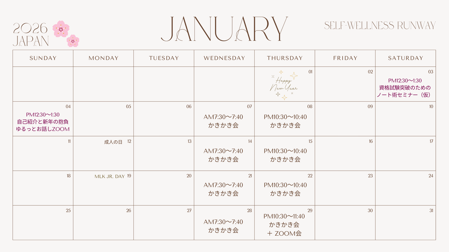 ・2026年1月3日 (土) PM 12:30〜1:30 開催予定の
